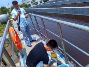 2016年06月20日,受河南省環境監察總隊委托,鄭州市通標環境檢測有限公司對新鄉市賈屯污水處理廠總排口進行采樣,附照片如下: